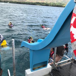 小学校1年、3年と妻とで4人で参加しました!足が届かない海が怖いと言っていた娘達の心配はどこへ?と言うぐらいシュノーケリングを楽しんでいました。滑り台もトライしました!スタッフの皆さんが楽しく優しく、安心して楽しめました。野生のイルカもすぐに見れました。子どもも大人も大満足!お弁当も日本人好みの味付けで、辛くもなく子どもも食べれました。子ども達に一生忘れない思い出になったようです。