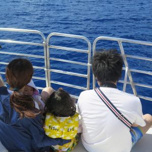 1歳3歳をつれての参加でした。大人でも疲れる一日ツアー、子供達は耐えられるかなと心配しましたが、海中展望塔では小窓から見えるお魚を追って大はしゃぎ。バイキングランチでも、ウエイターさんが子供の相手をしてくれて、仲良しに。笑顔いっぱいの楽しい昼食でした。イルカウォッチングも暑さと船の揺れで身体はちょっとヘタリ気味でしたが、イルカが泳ぐ姿を発見するやいなや大喜びで魅入っていました。途中で冷たいジュースも頂き、ほっと一息つける場面もありました。子供も一緒に楽しめる良いツアーでした。