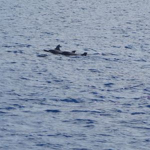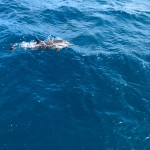 あんなにたくさんのイルカが自然の中で自由に泳いでいる姿に感動しました!!船が出す波に戯れて,波を追いかけ,波を跳び越していました。