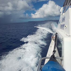 イルカポイントまでは、30分くらい船に乗ってます。揺れにくい船ではありますが、場所によっては波も高く、酔い易い方はぜひ酔い止め薬の服用をオススメします!