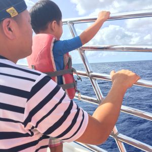 当日は風が強かったの心配でしたがイルカに会えることが出来ました!スタッフの方も親切で、日本人のガイドの方は非常に面白く、乗客を楽しませてくれました。海上では様々な見所、海の様子を説明して頂き飽きることがありませんでした。3歳の子供もイルカに会えて非常に喜んでいました!イルカウォッチングの後は海上での滑り台とトランポリン、シュノーケリングを楽しみました。子供連れの参加者が多く、全員で楽しんでした様子。おススメです!