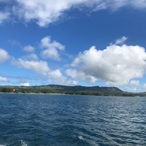 繁華街から離れた景色になり、わくわく。同ツアーに、小さい子もちらほらいて、ほっこりしました。船酔いされていた人は気の毒でしたが、その方以外は船の前方から海風を受けて気持ちよさそうにしていたり、日よけができる船の中でアイスティーを飲んでのんびりしたりとゆっくりしていました。途中、雨がザーっと降っても、止んだら虹が出て、ラッキー!かわいいイルカもちょっと見えてよかったです。