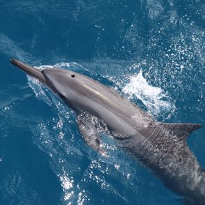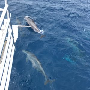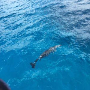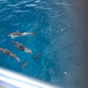 イルカたちはすごく元気で、ボートの後ろから出る波に乗っていたり、大ジャンプを見せてくれたりして楽しかったです!また、イルカをかなり近い距離で見られたのもよかったです。