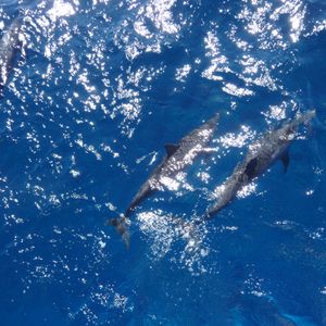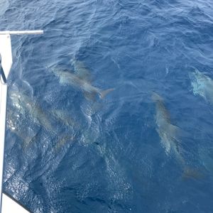 去年、他社の同じツアーに参加しましたが、船がオンボロな上、イルカも見れず残念な想いをしました。今回は船も大きく、航行も安定していて、安心できました。期待どおりに20頭以上のイルカが船と戯れるように遊泳してくれて、まるでショーをしてくれているように感じ最高でした。近くでジャンプした時はみんなで大歓声があがり、最高に盛り上がりました。子供も大喜びでした。運がいい時は海亀も観れるらしく、来年も参加したいです。