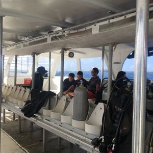海は船上から底が見えるほど透明で、珊瑚が沢山見える綺麗な場所でシュノーケリングをしました。海面でも沢山の魚をすごく近い距離で見ることができ、すごく楽しい時間を過ごすことができました。また、珊瑚のある深い海底付近には大きな魚も見えました。