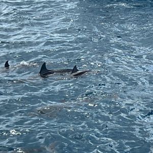 波が高く🌊子供、大人構わず船酔い者続出でした。半数以上が🐸だったので、船に強い方🚢、酔わない方にオススメです。残念ながらイルカには会えませんでした。なので、シュノーケリングとアクアウォークのみ体験しました。アクアウォークはすごく楽しかったです。ダイバーさんが楽しませてくれます。イルカに会えなかった分はアクアウォークで取り戻す感じでした。ただ、閉所や水圧の関係で断念する方もいました。耳閉感👂を上手く取り除ける方、思い被り物をずっと背負える方にはオススメです。