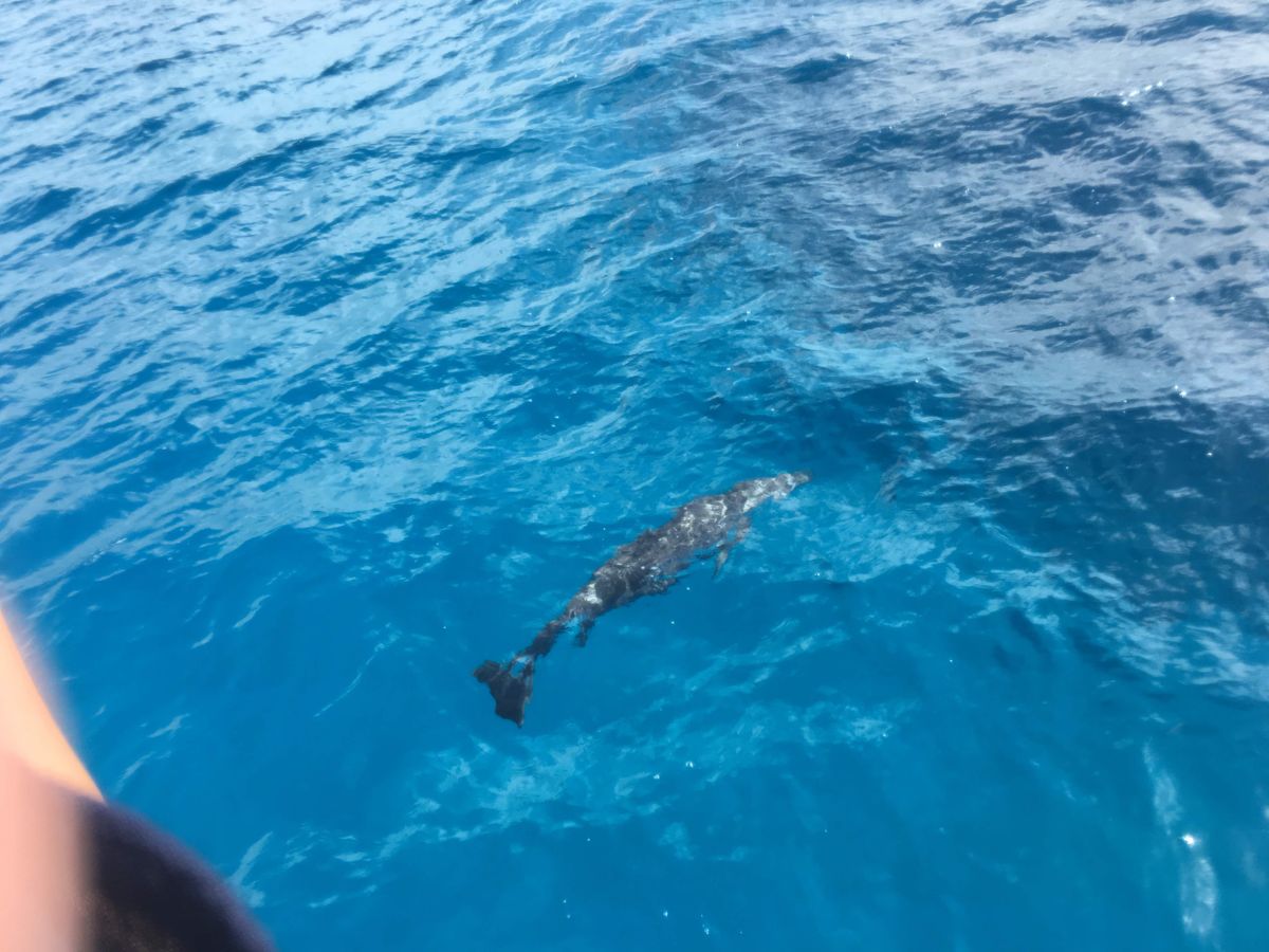 イルカが見れると言っても遠くの方に一匹見えるくらいを想像していましたが、全然違いました。一匹どころかイルカの群れが船のすれすれを泳いでいるのが見えて感動しました。シュノーケルは魚の種類はそこまで多くありませんでしたが、ガイドさんが魚の餌をまいてくれて、船の周りでたくさん魚を見れました。
