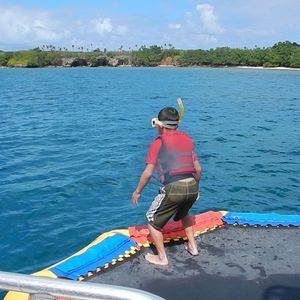イルカウォッチングの後は、シュノーケルタイム。トランポリンや小さいすべり台などもあり、ファミリーも十分楽しめます。