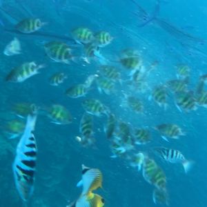 海中展望塔でも色々な魚が見れ、まるで水族館に行った気分で、海の中には