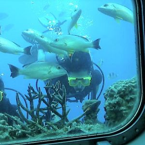 ちゃろ様 お姉様のご結婚 誠におめでとうございます!(^▽^) 大切な記念のご旅行に当ツアーをお選び下さりありがとうございました。楽しい時間をお過ごし頂けたご様子で何よりです。なお、海中展望塔内はエレベーターがないのですが、上層階に水中のライブ映像を放映しておりますモニタがありますのでおみ足がお辛い方はそちらで海中世界をお楽しみ頂く事が出来ます。また、桟橋入口のゲートハウスにお貸出し可能な車椅子もございますので次の機会にはご遠慮なくお知らせ下さい。長ーい桟橋を往復するだけでも、海の上をお散歩気分でとても楽しいと思います。他に夜のディナーショーもおすすめですので、又どうぞご家族皆様でグアムとフィッシュアイへ遊びにいらして下さい!この度は、誠にありがとうございました。