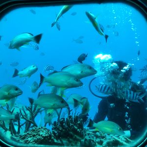 イルカウォッチングのツアーを調べてみると、船に乗っている時間が長くて大変そうでしたが、こちらのツアーは船に乗って15分ほどで、たくさんのイルカに会えました!出発してから1時間ほどで戻ってこれるので、帰国日でも余裕で参加できます。海中展望塔でもまるで水族館の中の魚たちを見ているかのような色とりどりの魚たちを見ることができました。次回はぜひ、ここでシーウォーカーやダイビング、シュノーケリングもしたいと思いました。
