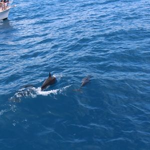 イルカの群れに遭遇でき、船の先頭でイルカウォッチングが楽しめました。日本人乗客が多いためか説明も日本語でわかりやすく、とても満足しています!