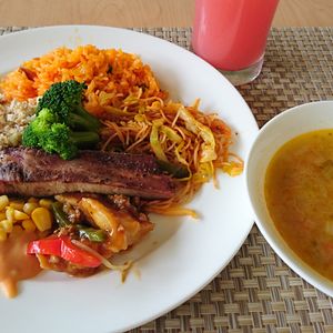 ソフトドリンクは飲み放題、お弁当は和風でした。