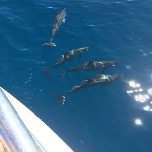 出航してから3分でイルカの大群に出会えました^^キャプテンたちも親切で助かりました。私たち親子3人は船酔いで大変でした(;'∀')