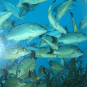 浜から歩きながら潜っていくと、シュノーケリングでは味わえないような魚が間近で見れますし、ソーセージ貰えるので、たくさんの魚がよってきます。