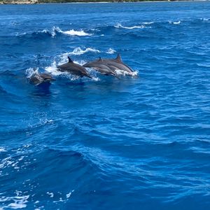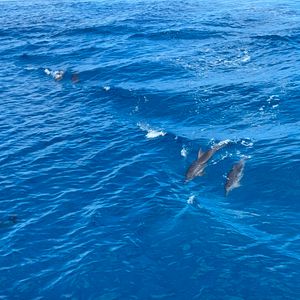 イルカたくさん見れました!群れで泳いで、ボートの波で遊ぶようについてきてぴょんぴょん跳ねたりしてとっても可愛い〜!その後何度も現れてくれました