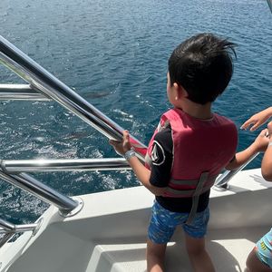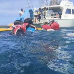 5歳&8歳の男の子連れの家族4人で参加しました。イルカウォッチングと銘打ってるだけありすぐにイルカに出会えて、子供達はテンション高めで見ていました。そのあとはシュノーケルタイム!しかし5歳の子はシュノーケルに興味なしで…でもこのツアーだと滑り台&トランポリンがついており、5歳の子はそれで最後まで楽しく遊べたため「帰りたーい!」とならずにすみました!また、最後にはカメにまで遭遇できて最高の体験でした!!
