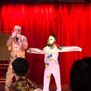待合室のすぐ隣のカーテンをくぐるとステージがありますが本当にこじんまり。なので、どの席からも良く見えます。韓国、アメリカ、日本人が参加してましたが参加型で子供もずっと楽しんでました。あっという間の1時間でした。最後に無料で写真撮影タイムもあったり前に出て参加してる最中の写真も撮ってくれてプレゼントしてくれたり。満足しました。