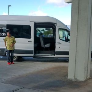 3年前にもこの送迎シャトルサービスを利用させていただきました。グアム空港到着後の税関検査の出口は1カ所で、ガイド兼運転手さんは出口のところで待っていました。自分の名前が書かれた紙を持っており、迷わずすぐに会えました。写真のような黄色いシャツを着ていましたのでそれが目印です。バスではなく、バンタイプの車で空港からタモン地区のホテルまで快適に送迎してくれて良かったです。