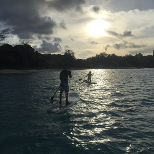 sup体験ではサンセットを見ながら海を漕ぐことができるので景色も楽しみながら体を動かすことができます!初心者の方でも一から丁寧に教えて頂けるので安心して体験することができます。