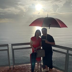 サンセットは見られずでしたが、代わりに地元に人気のビーチのモニュメントで写真を撮っていただきました。