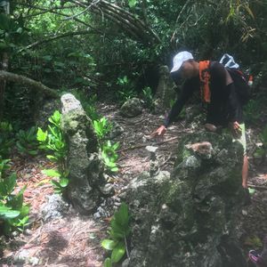 道中険しい岩道を歩きますが、ただ歩き続けるのではなく、要所で草の話や動物のこと、グアムの歴史や文化の話も聞けて学べました。