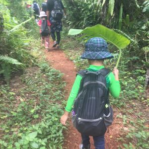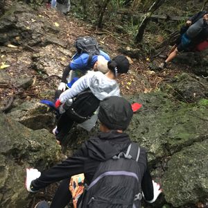 家族5人で参加しました。1番下は6歳で不安もありましたが、ガイドさんが話しかけながら楽しませてくれたおかげで、疲れも見せず先頭を切って歩いていました。途中険しい道もありますが、ゆっくり行けば降りれないことはありません。雨が降っていたのでレインコートを貸してくれました。足場も少し滑るので、靴を履いていって正解でした。口コミにあるように、赤土で汚れましたが、帰国して洗ったらとても綺麗に落ちました。洞窟で泳ぐ靴は別に持っていく方がいいです。洞窟内では、携帯をジップロックに入れている方は没収されていたので、ちゃんとした防水ケースで参加すれば洞窟内の素敵な写真が撮れます。とても神秘的です。そして頂上で食べたおにぎりは格別!2つでしたがフルーツやおやつもあり、足りました。