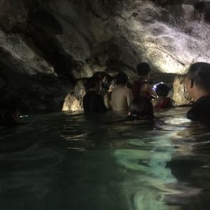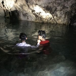 洞窟内はスタッフが持って来たライトで何とか内部が分かる位真っ暗。水が冷たくて気持ちいい。足がつかない箇所もあるのでライフジャケットは借りた方が無難。
