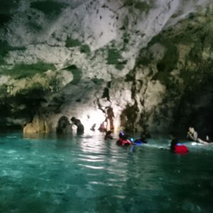 わりと体力が必要ですがガイドさんのサポートが万全で無理なく参加できました。スタート時は小雨。でも洞窟内は雨は関係なし!真っ暗な洞窟の中にある抜群の透明度のプールは本当に神秘的。