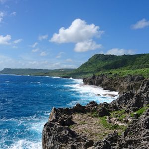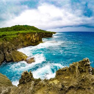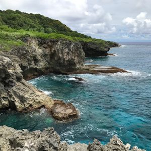 洞窟での体験はもちろんですが、洞窟を出て海に出た時の景色のすごいこと!思わず歓声をあげました。グアムにこんな美しい場所があるとは。ツアーの解説にはこの海についてそれほど詳しくは書いていませんが、ここで食べたおにぎりの昼食は最高でした。