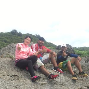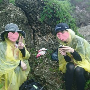 ゴツゴツとした岩肌にレジャーマットを敷いて、薄~いレインコートに包まって雨ざらしで食べたおにぎりの味は忘れられませんwまるで遭難して救助ヘリを待ってるのかと錯覚しそうなシチュエーションでしたが、それすら楽しくずっと笑いっぱなしでした。