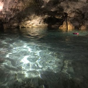 洞窟は神秘的。水もすごくきれいです。水深は深いところで3m。ライフジャケットの貸し出しもあります。他のツアー客がいなかったので、貸し切り状態で30分は泳いでいました。