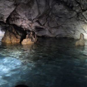 洞窟はとても綺麗で歩いたかいがありました。洞窟の水の中を歩くのでマリンシューズは別に持参した方が良い思います。(下は石で素足は痛いです)山道も石が多く底が厚いものがお勧めです。お昼の時に遠くに海亀が見えました!