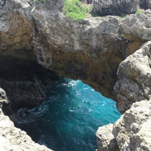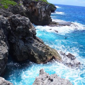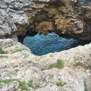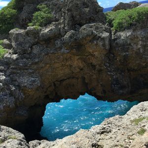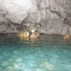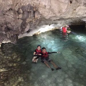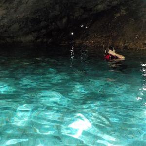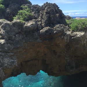 前半は森の中をどんどん下って行きます。蚊がすごいので虫よけスプレー必須、岩がごつごつしているので長袖のほうがいいです。動物を見られるのを期待していたのですが、グアムには外から持ち込んだ動物しかいないとのことでした。植物は日本では見られないものも多く、ガイドさんが色々と説明してくれて勉強になりました。お昼は崖の上で海を見ながら。曇っていましたがいい景色の中で食べるおにぎりはとてもおいしかったです。腹ごしらえをしたところで、メインの洞窟へ!暗いので、懐中電灯を点けて進みます。泳ぐことができる場所に行くまでに腰あたりまで水に浸かる細い道を進みますが、頭の上や肩に担げば荷物を濡らさずにすみます。濡らしたくないものを厳重にビニール袋に入れて行きましたが不要でした。少し進んだところに開けた空間が!荷物を置くことができるので、水着になり泳いだり記念撮影をしたり。楽しくてあっという間の半日でした。次回は違うコースで参加したいです!