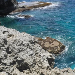 洞窟を出ると海のすぐそばの崖へと歩き、ここでお昼休憩。