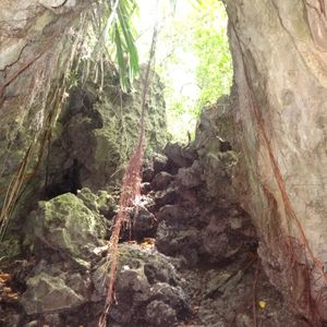 現地では蒸し暑いジャングルの中をしばらく歩いた後、洞窟に到着です。