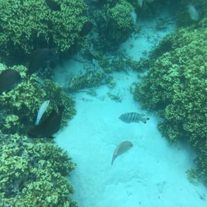 午前中に雨が降ってしまったので透明度は期待できないなと思っていましたが連れて行ってくれた場所はフィッシュアイというエリアの近くでとても視界が良くてかなり満足。ウミガメは見れませんでしたがバラクーダも見れました。ちなみにジムさん海の中までガイドします(インストラクターの免許持ってる)。あとシュノーケルも事前に言えば人数分用意してくれるので事前に連絡取り合っとくのがいいです!そのあと紹介してくれた店も美味でございました。