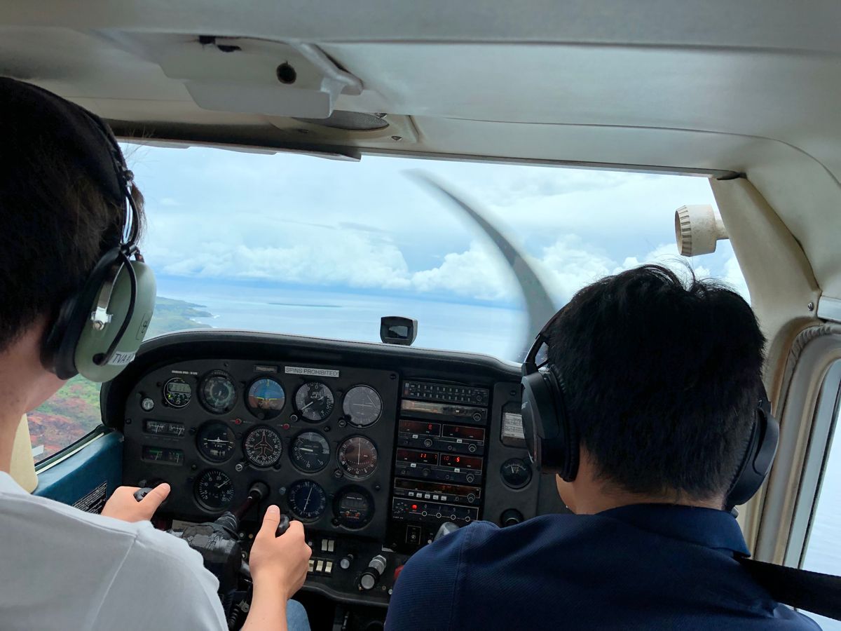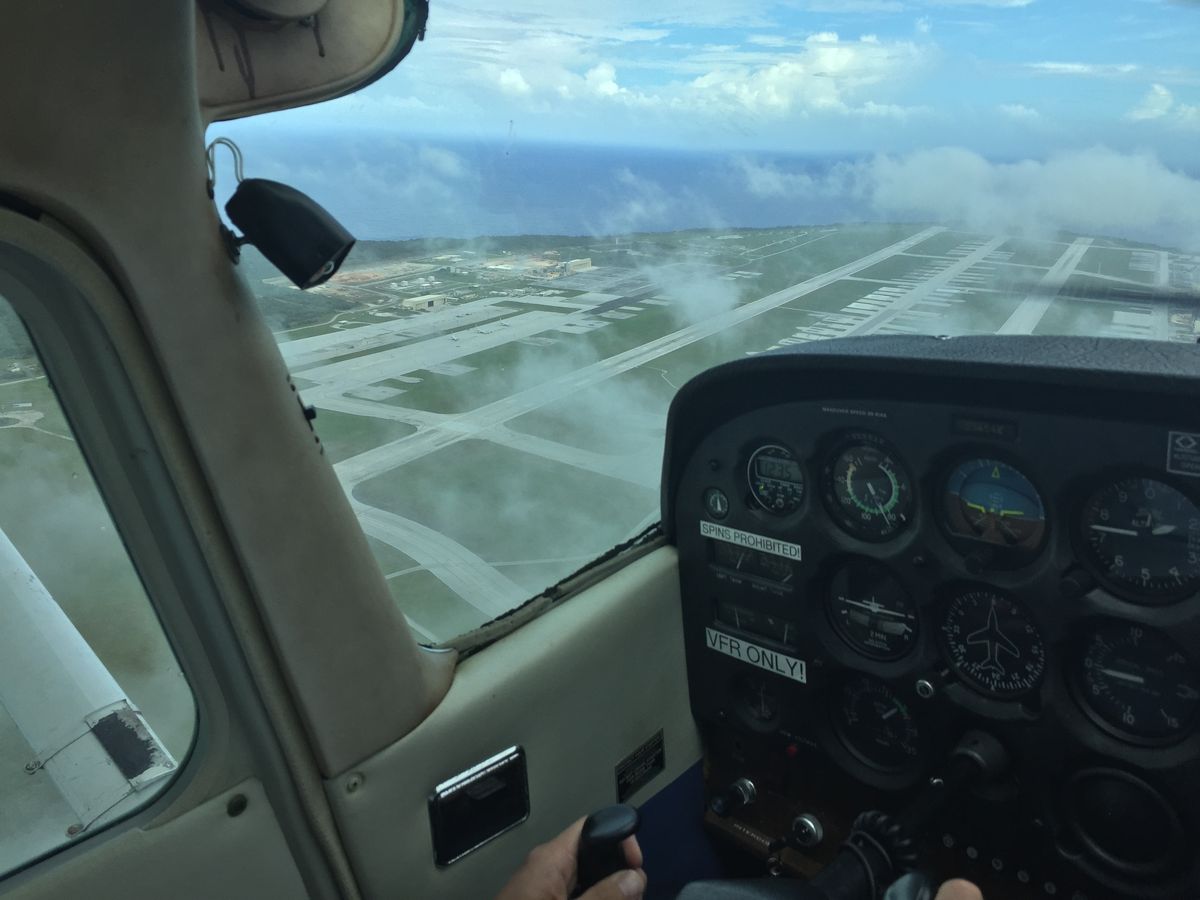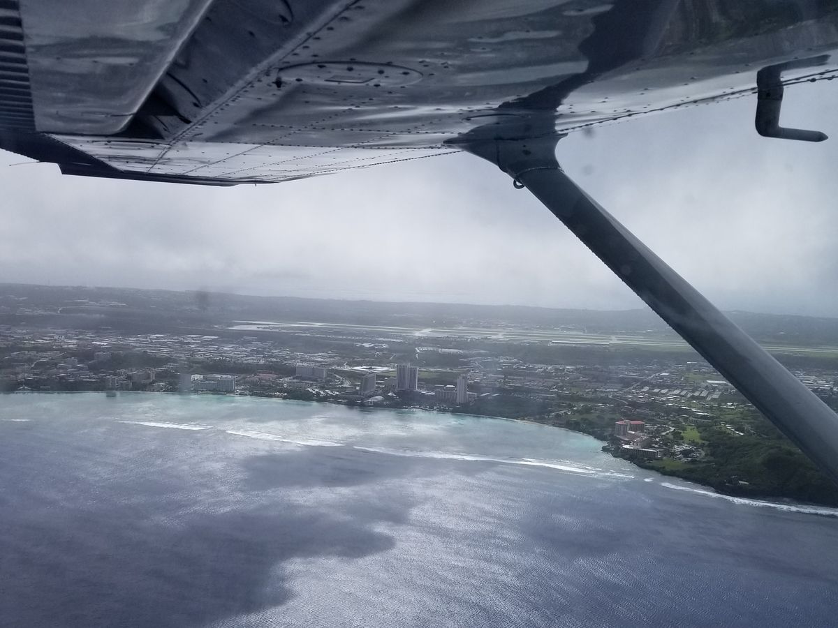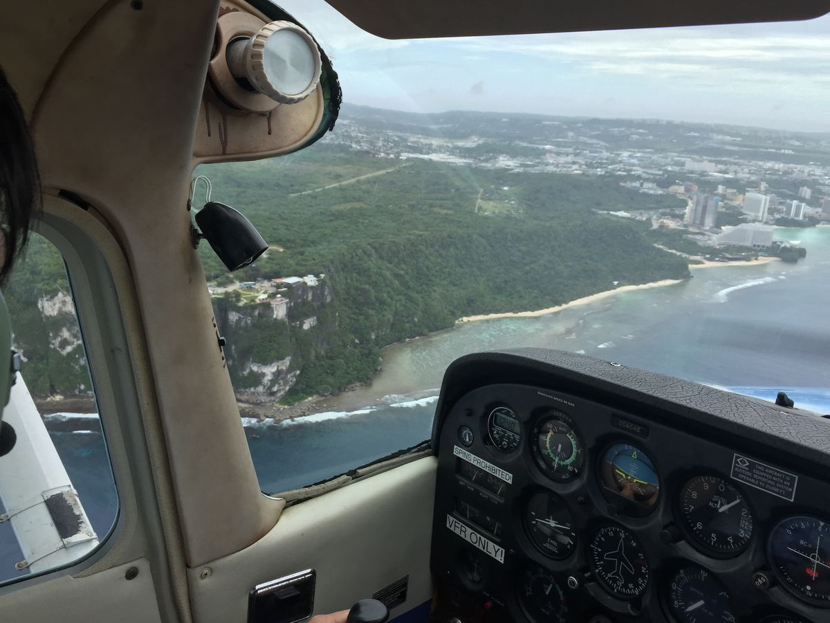ひとりで少し不安でしたが、日本語でしっかり指導してもらったので問題なく操縦することができました。少しだけアシストがあるくらいであとは全部自分で操作しました。離陸後少し飛ぶとアンダーソン空軍基地が見えてきて基地上空を旋回しました。爆撃機や無人偵察機を見ることができました。その後恋人岬を目標に飛び続け空港へ向かいました。タッチアンドゴーもさせてもらい、最高の体験ができました。送迎もしてくれるのでとてもありがたいです。