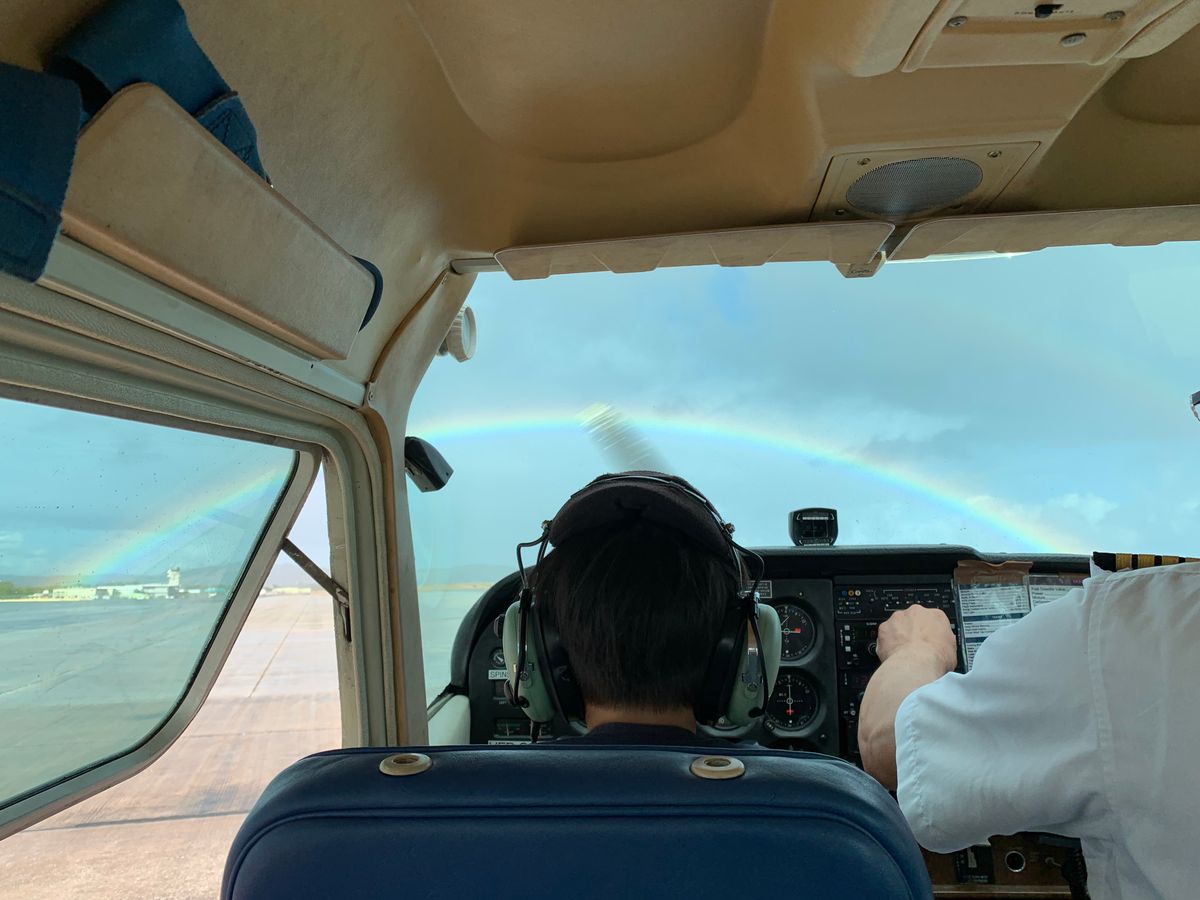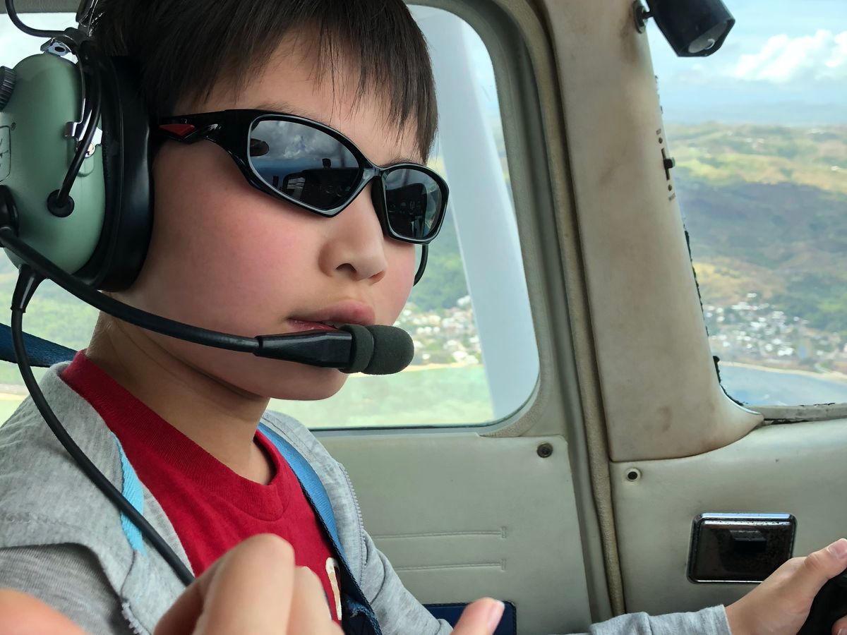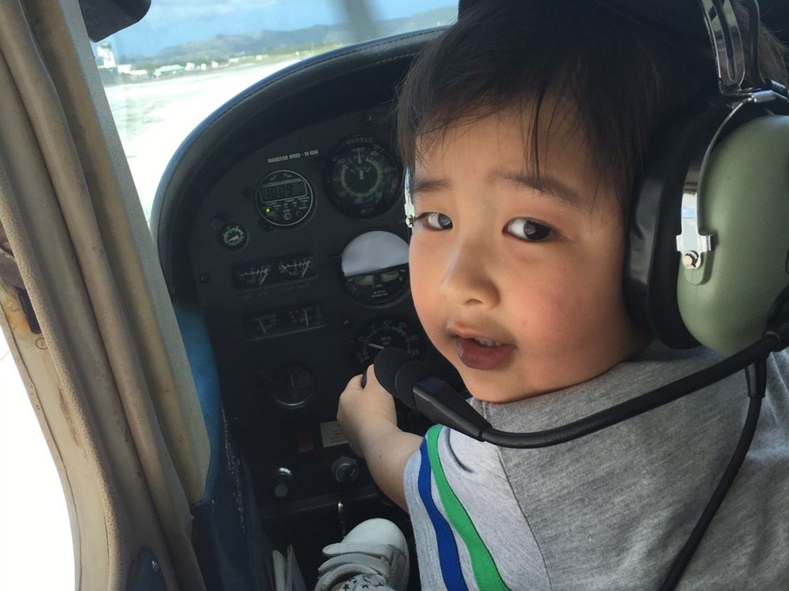 5歳の我が子がセスナを操縦なんて想像もつきませんでしたが、いざ現地に到着すると、パイロットの方がとても親切で丁寧な方で、上手に子供のやる気を引き出してくださいました。離陸時には、うちの子の操縦で大丈夫か、主人と後ろでハラハラしましたが、後ろから操縦桿を握る姿が真剣で、いつものお調子者ではなく真剣そのものでした。上空では、グアム島を案内してくださり、ゼロ戦の滑走路の短さに胸がつまる思いをしたり、その日は朝から雲行きが悪く少し雨が降っていたのに、急に晴れ間が見えて、大きな虹がかかりました。息子もその虹を見て感激していました。30分のフライトの中で日々の暮らしの事を考えさせられたり、もっと息子にたくさんの経験をさせたいと思いました。また同じパイロットの方に教えていただきたい!また乗りたい!と言っています。主人もとても嬉しそうでした。グアム旅行の中で、1番の宝物になりました。