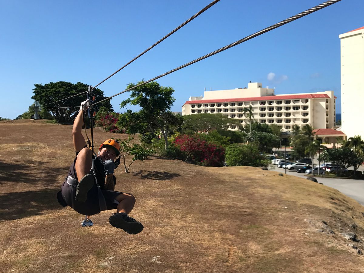 ヒルトンホテルの敷地内にあるアクティビティです。ジップラインは、6本できます。始めの3本は、コツをつかむ体験。残りの3本は、海に向かってのジップラインで爽快でした。途中で見える景色が、とてもきれいです。スタッフさんが、都度止まって写真を沢山撮ってくれます。ジップライン終了後に撮影会があり、写真を購入するよう勧められます。送迎については、スタッフさんが手が空いてない場合、赤いバスのチケットをわたされます。
