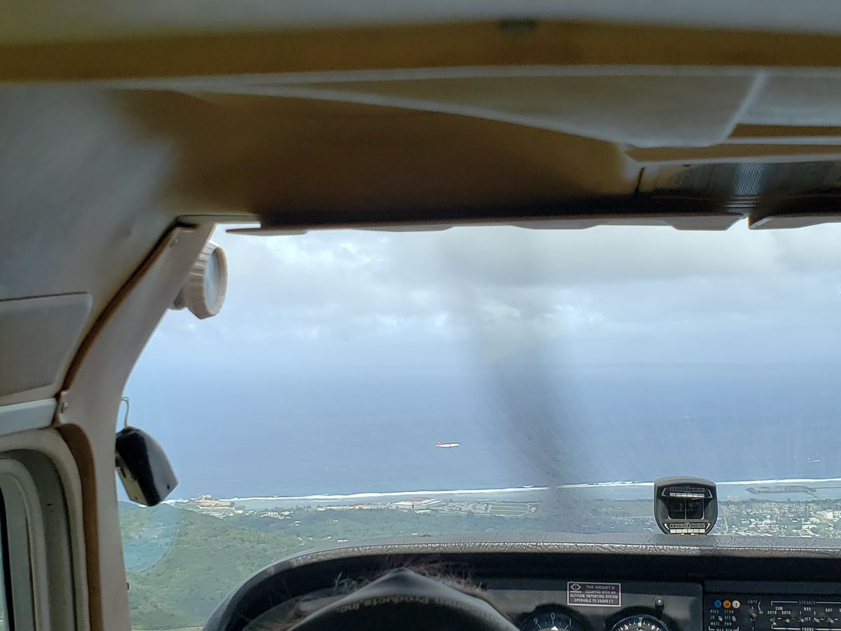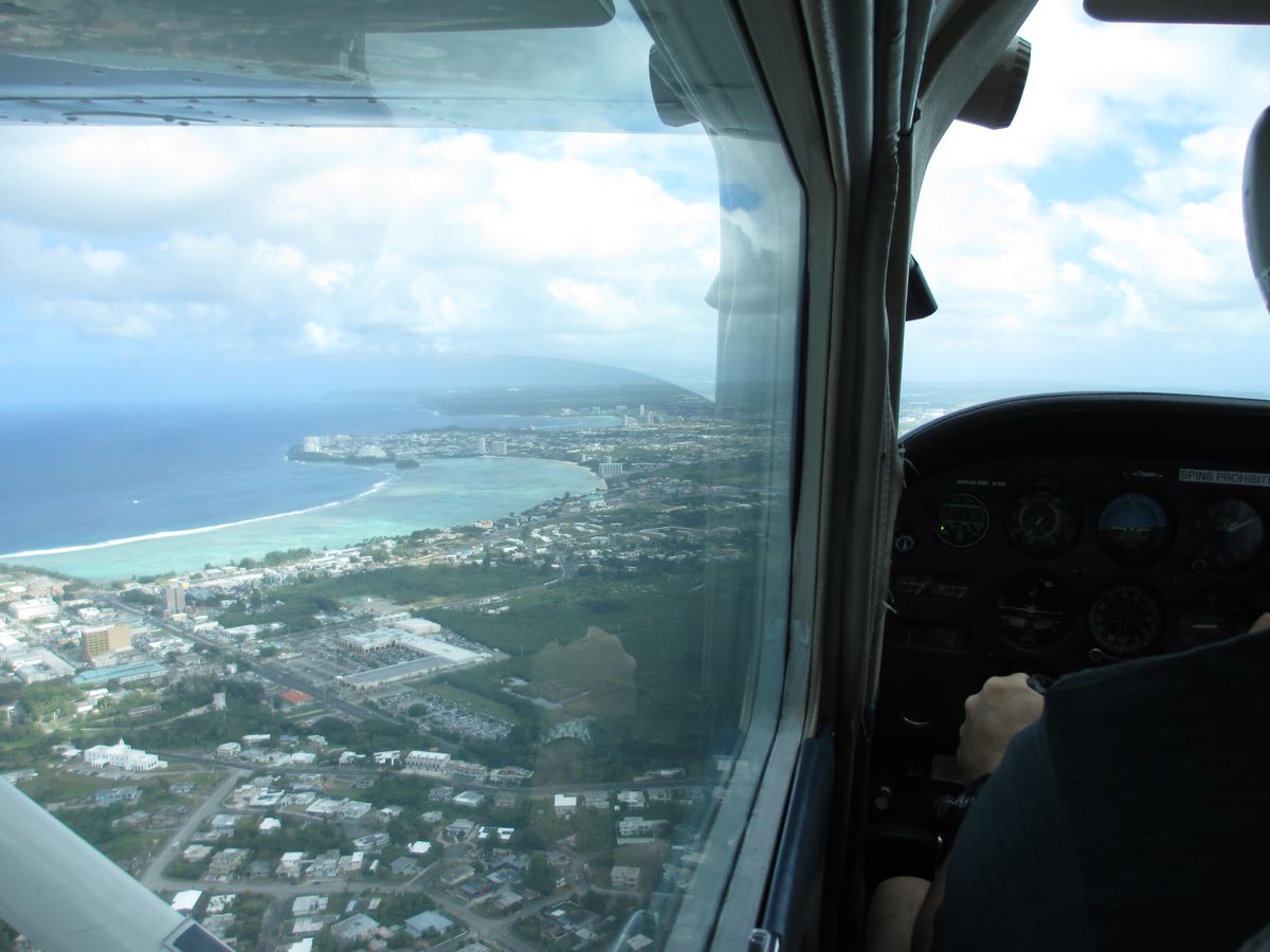 エンジンスタートからタキシング、離陸、上昇、水平飛行、そしていよいよ訓練体験!まずは、左右の急旋回、続いて緊張のストールからの回復、ド派手なレイジー8、タッチ&ゴー、最後にタモン湾を旋回してからの着陸というフルコースでした。とにかく自分でセスナを操れるのは最高です☆☆☆