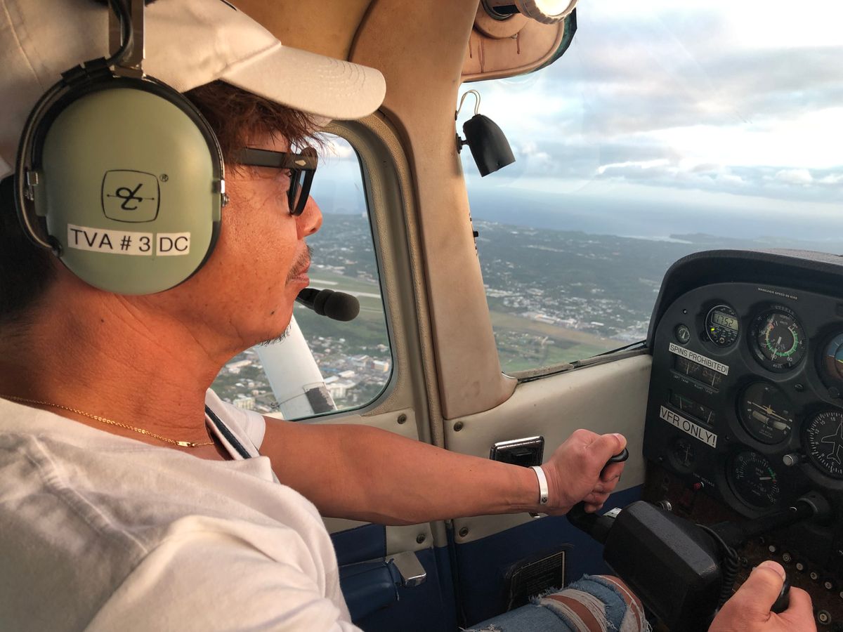 空港に戻るときは「操縦輪とペダルを自由に操作してセスナ操縦の楽しさを体験してください」のお言葉も!タロフォフォの滝の上空で旋回し、空からのグアム観光も自らの操縦で楽しめます。