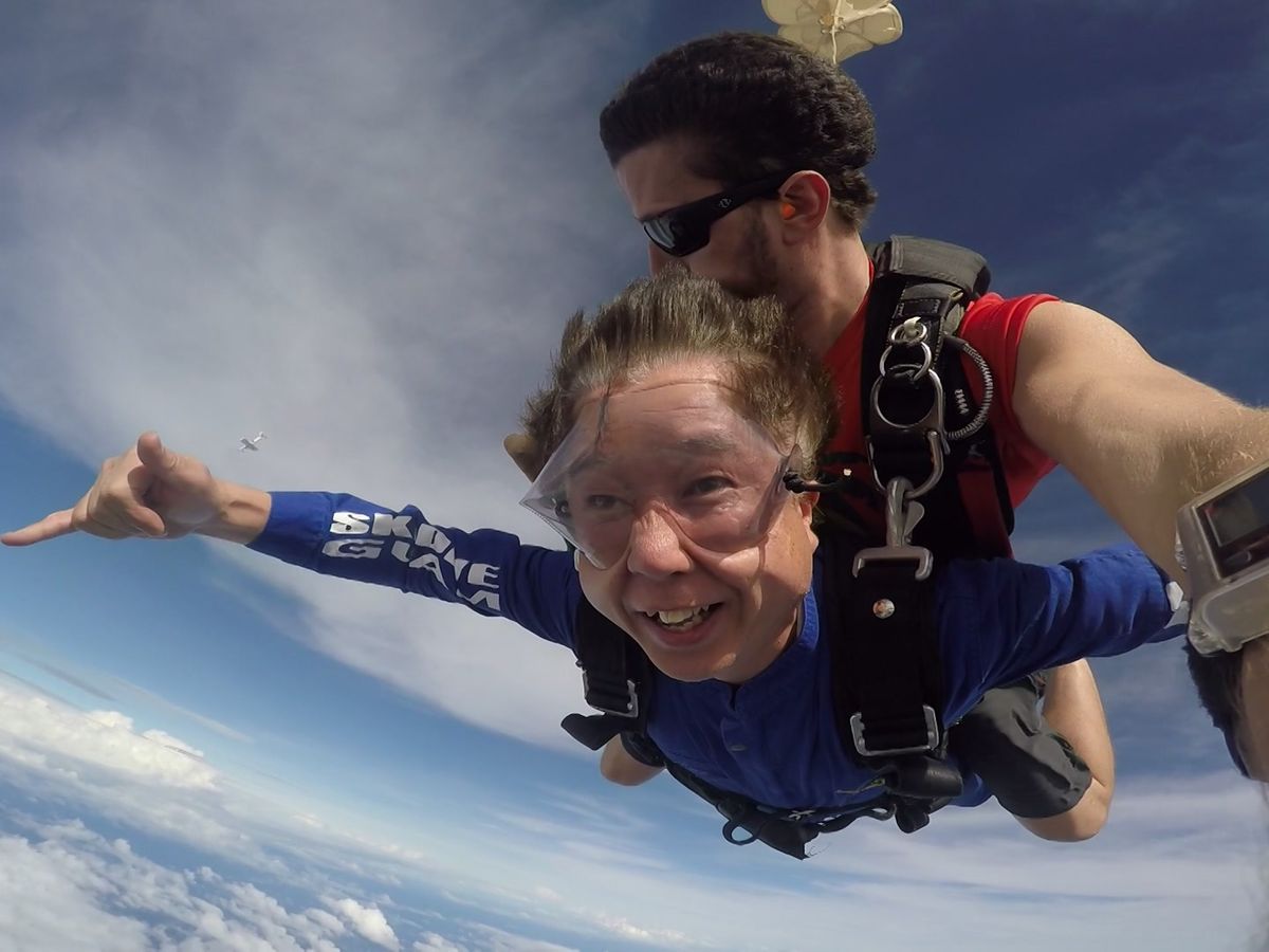 飛び降りる瞬間からパラシュートが開くまでのフリーフォールは味わった事のないスリルで、パラシュートが開いてからはとにかく絶景で気持ち良くて、最高の一言です!