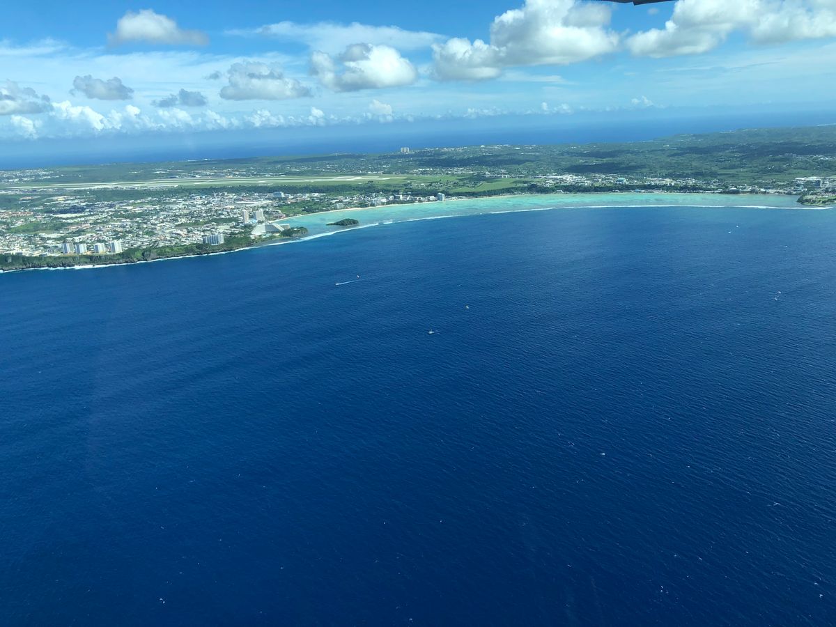 訓練当日は、1時間グアム一周のフライトで、アンダーソン空軍基地も上空から見ることもでき、着陸時は薄暮で滑走路の点灯もありとても素晴らしい景色でした。