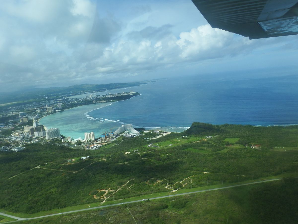 タモン湾から、アブラ湾までのコースでした。とてもきれいで、やはり上から見るのはいいなあと思いました。恋人岬~タモン湾、フィッシュアイと海軍基地。普通は見れないところを上空から見ました。感動です。また、乗りたいです。(パイロット体験も前にしました。その時は緊張しすぎて景色が良く見れなかったので今回はゆっくり景色を楽しめました。)