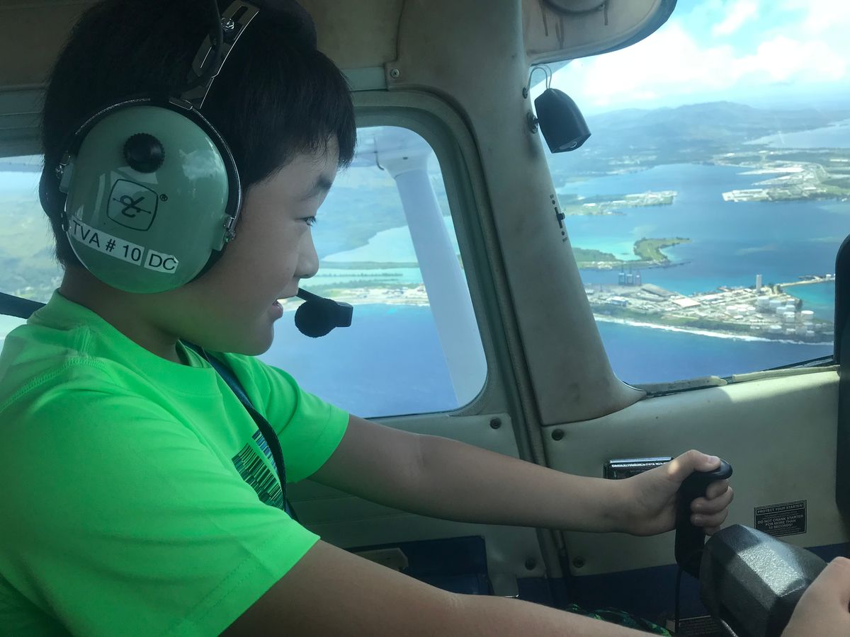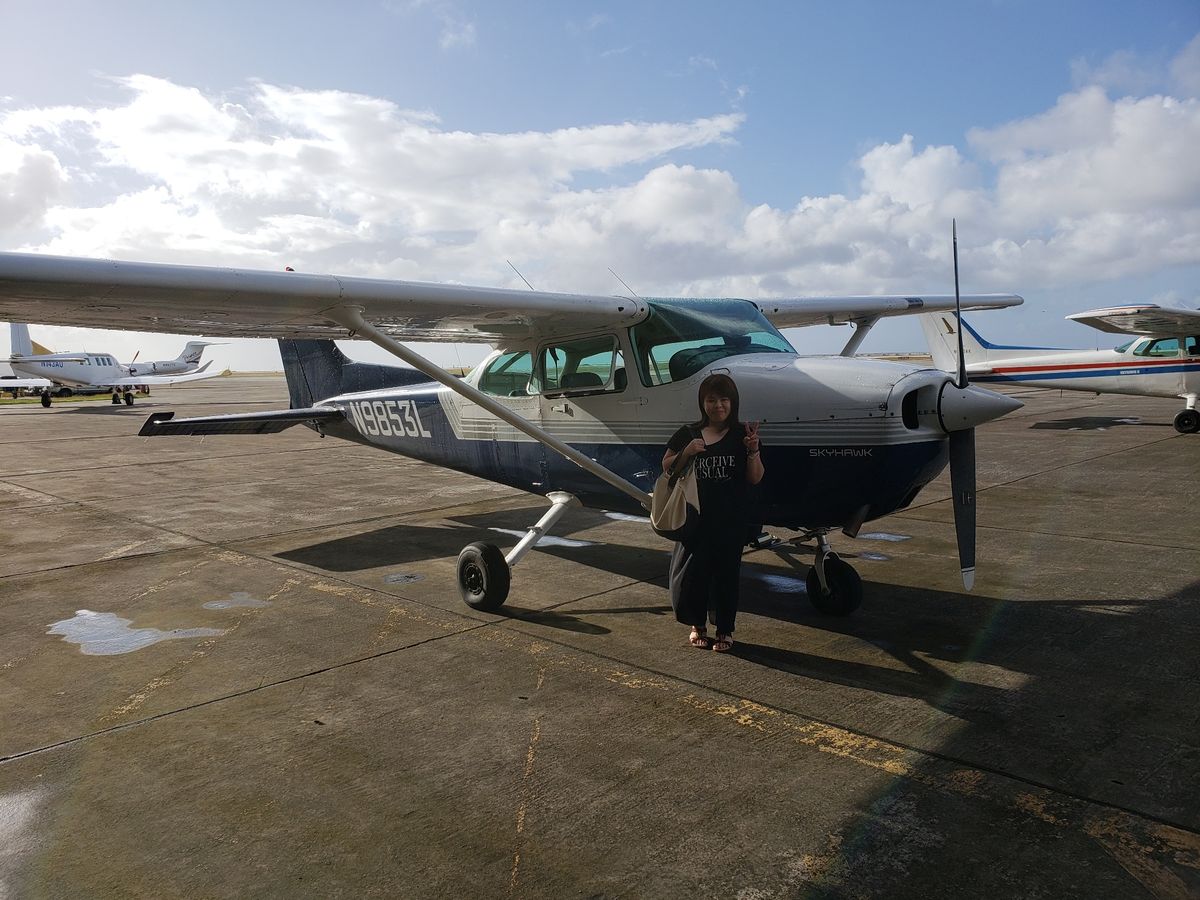 子供のころからの夢、諦めていたところセスナの体験操縦のことを聞き、66歳遅かったのですがチャレンジしました。時間にして40分程度の体験操縦ですが、離陸から着陸まで体験出来て最高に興奮しました。空から見るグアム島とても美しく素晴らしい景色でした。まさか、自分が操縦していると思うと信じられない思いです。操縦しているところもスマホの動画を撮っていただき良い思い出となりました。操縦にあたっては、指導教官の丁寧かつ的確な指導を受け安心して楽しめることが出来ました。人生100年といわれる昨今、再び操縦出来るよう新たな目標が出来た思いです。本当に素晴らしい体験を提供していただき有難うございました。