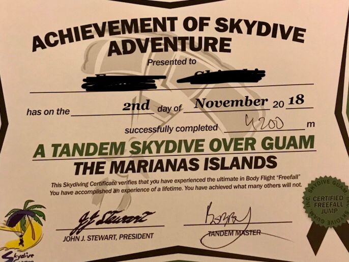 先日はスカイダイブグアムへご参加ありがとうございます。