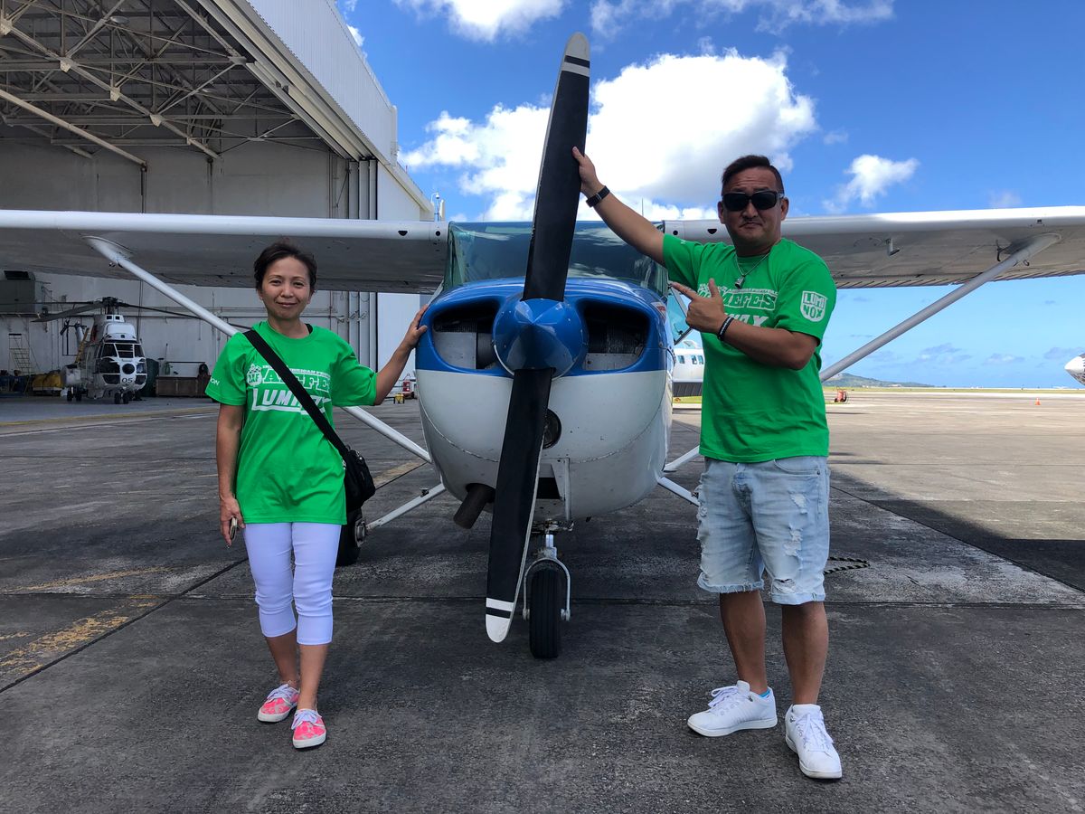 なんと送迎してくださった方(お父さんがグアムの方でお母さんが日本人のハーフとのことでした。+イケメン!) はパイロットで、まだ教官資格の勉強中のため、訓練飛行はできませんが、遊覧飛行は私が担当しますとのことでした。