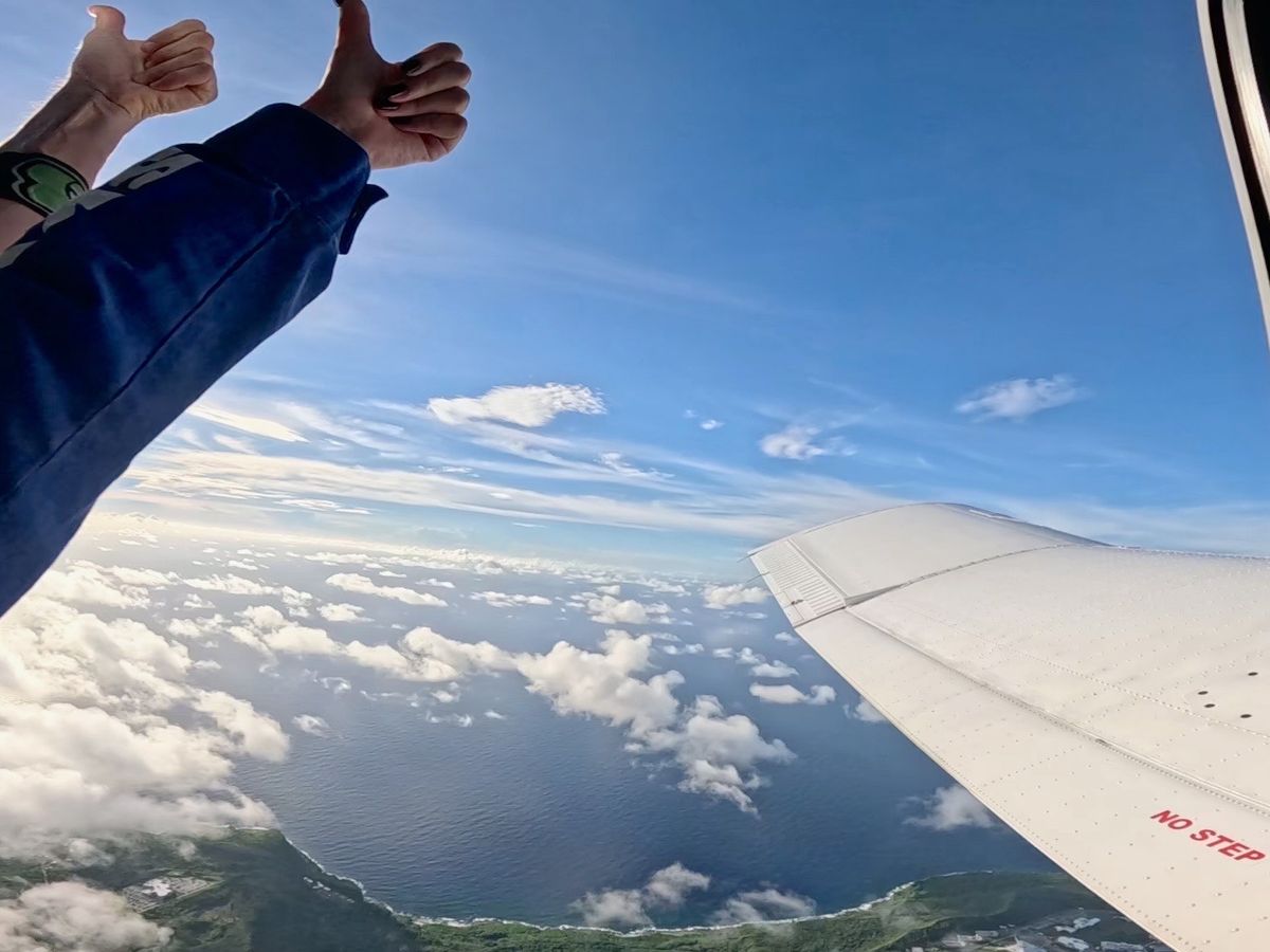 決意したはいいけど、アクティビティ前日まではスカイダイビングのことを思い出しては手に汗握るほど不安と緊張に駆られていました。ですが、当日はバディのスタッフさんが私のテンションあげてくれたおかげで少しずつワクワクへと変わっていきました。飛ぶ直前なんて機内ですっごく笑顔になってる私がいました。(プランは2400mで予約しましたが、スタッフさんのおすすめで当日4200mに変更しました!)