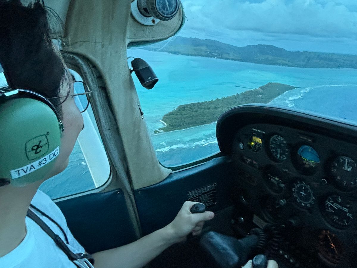 離陸して安定するまでは緊張しましたが、上空に出ると一気に視界が開けて、青い海とグリーンの島のコントラストが広がり、まるで絵のような景色でした。操縦桿を持ち自分で飛行機を動かす感覚は感動もの!インストラクターの村上さんの気さくで優しい人柄に安心感があり、優しく丁寧にサポートしてくれたので、初めての操縦体験も安心して挑戦できました。